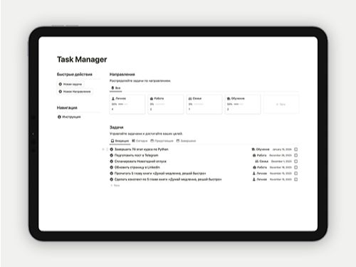 Используйте этот Task Manager, чтобы сделать вашу жизнь более организованной и продуктивной. Создавайте задачи, устанавливайте сроки и выполняйте их.